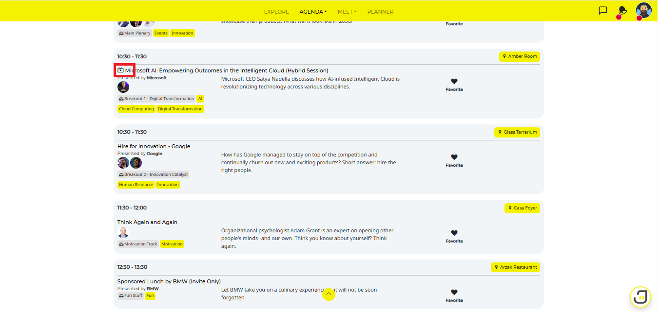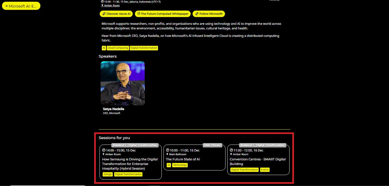 When accessing the agenda session, scroll down to the Sessions for you section.