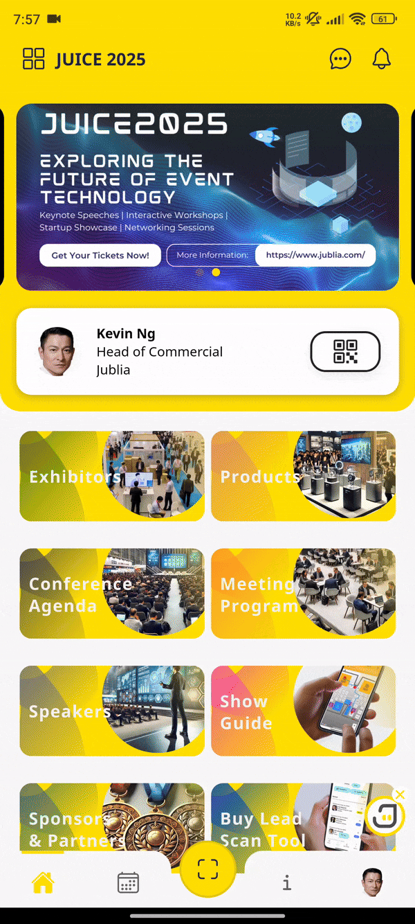 In the Home Menu, access the Agenda menu to view the list of sessions.