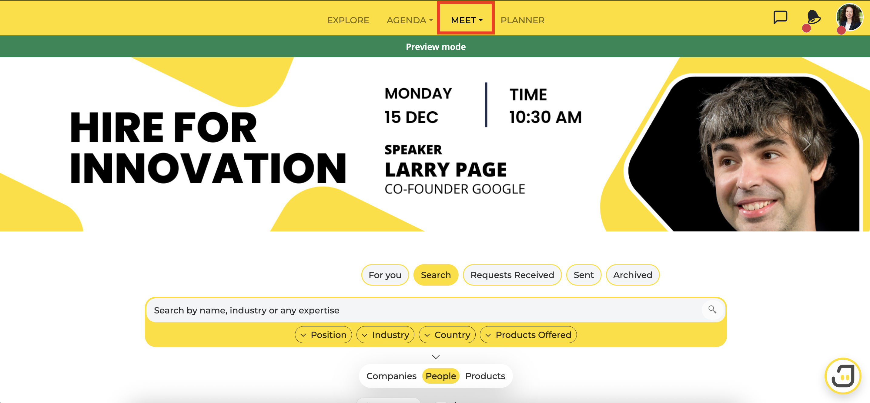 Go to the Meet menu at the top of the navigation bar and click on Search.