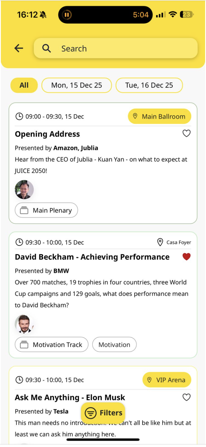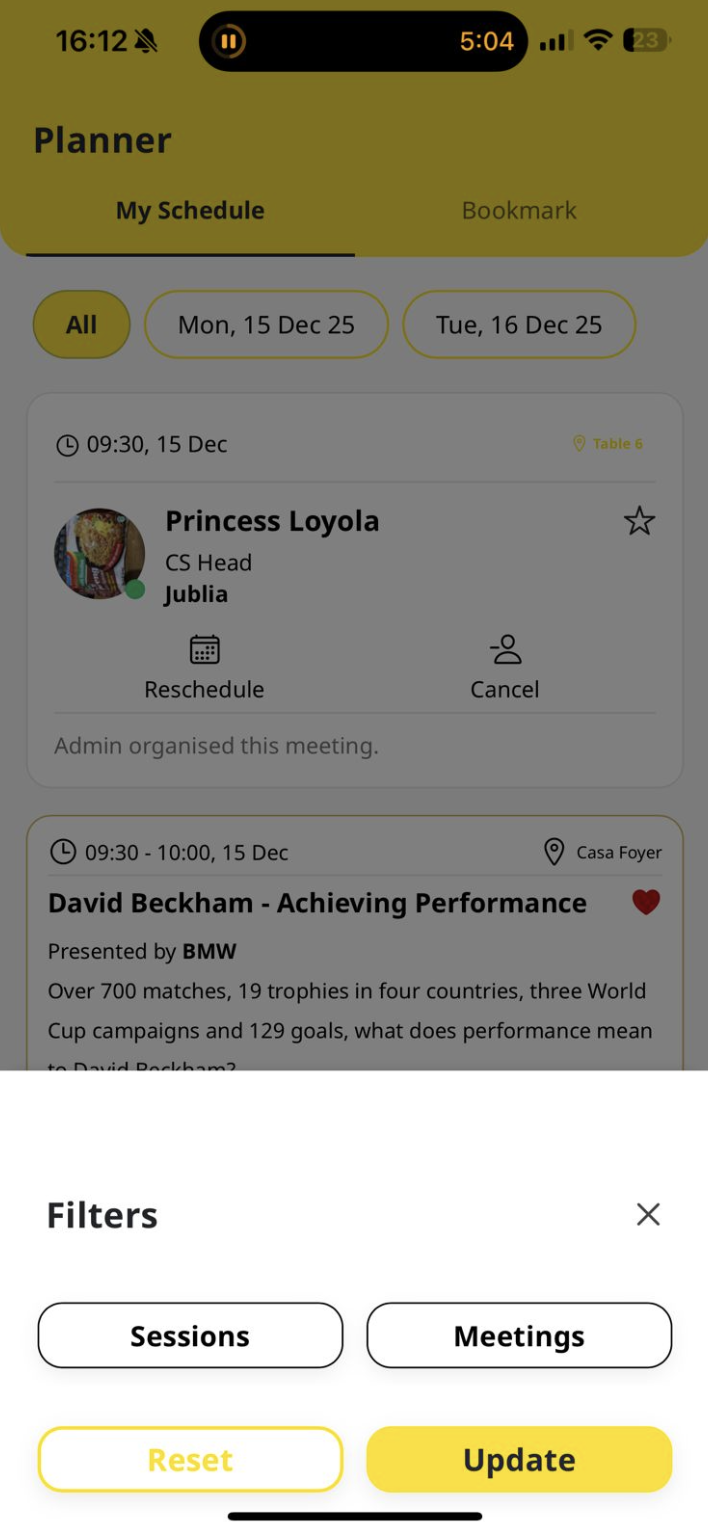The session you’ve marked as a favorite will appear on your Planner. Tap the heart again to remove it from your favorites.