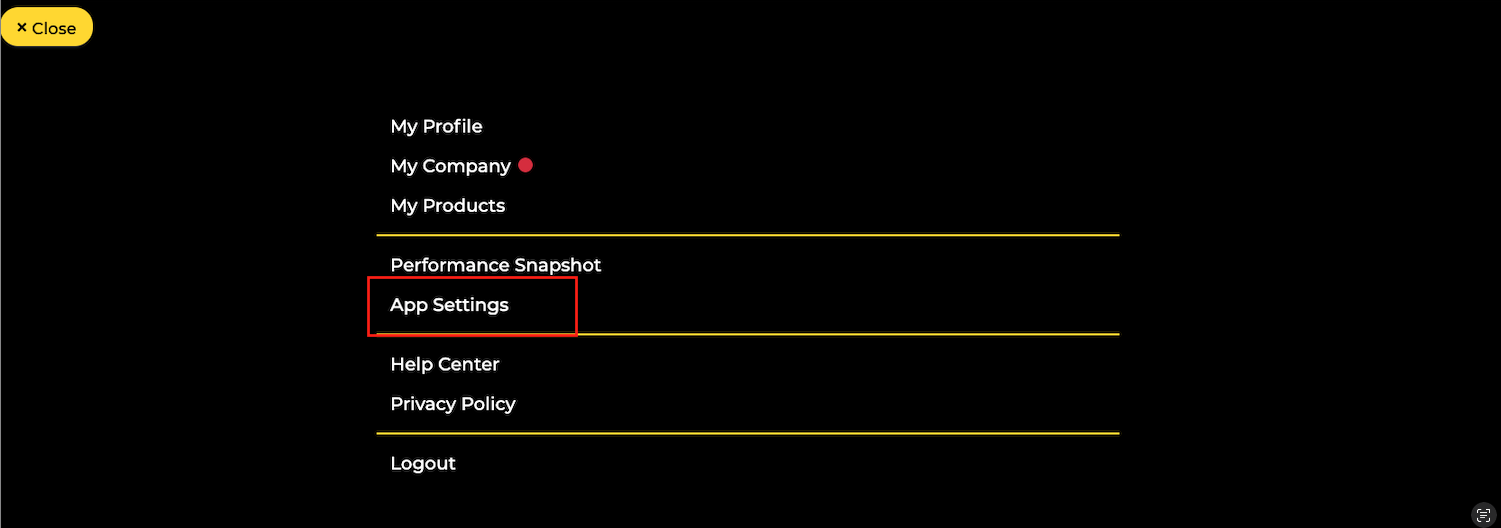 To begin customizing your notifications, click on your profile button located in the top right-hand corner of the screen. From the dropdown menu, select App settings to access your notification settings.