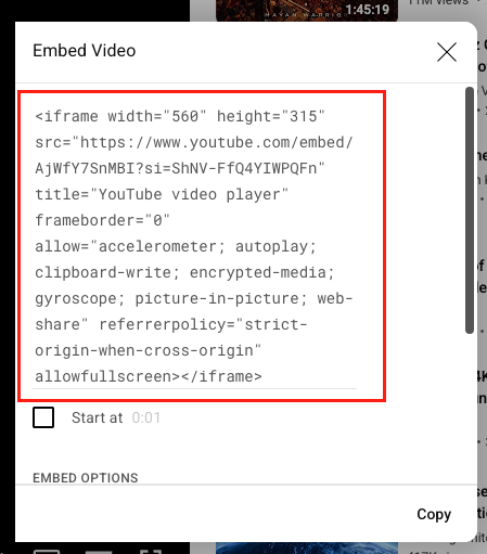 Adjust the video size and player options to your preferences and copy the provided HTML IFrame embed code.